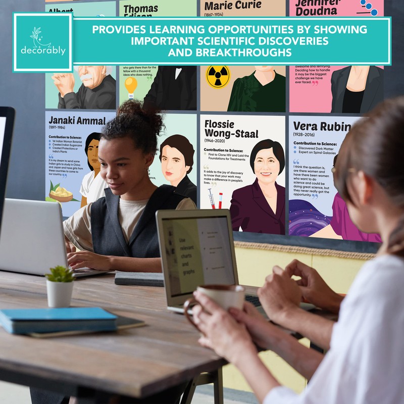 - DECORABLY ASSURANCE - Your happiness is our unwavering assurance. If you ever find yourself less than delighted with your scientist posters, simply contact us, and we'll make it right. Buy with confidence and don't miss out on these well-designed famous scientist posters!
