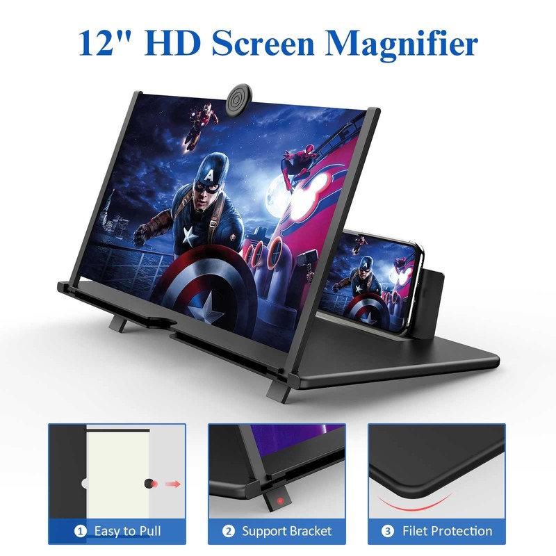 - 【12 Inch Screen Magnifier】- 2022 new upgraded 12'' 3D screen amplifier can magnify your phone screen 1-3times, fully fit the curvature of the human eye, more comfortable to watch. The screen magnifier will reduce the discomfort and visual fatigue caused by long-term focus on the small screen, and can effectively reduce the radiation.