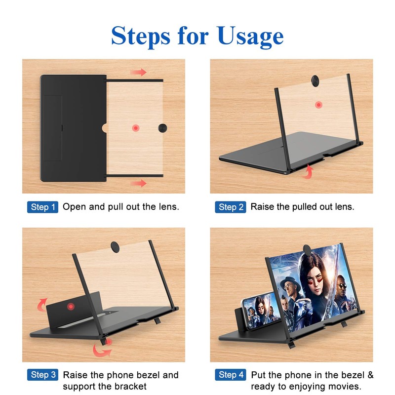 - 【Folding Design】- HD screen magnifier Storage type rotating folding design. If the height is not enough, height can be adjusted with the ring stand. Super slim when folded and also can be carried around in your bag. Suitable for indoor, camping, journey, leisure, anywhere and etc.