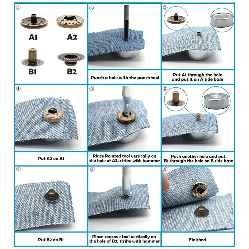 This heavy-duty snap fastener kit is perfect for DIY projects like clothing repairs and leather customization. The included hand tools make installation simple and secure. Follow the easy instructions, and practice on scrap fabric if needed for best results