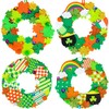 - 12 Sets St. Patrick's Day Shamrock Wreath Decorations Foam St. Patrick's Day Wreath Signs Craft Kits:12 pcs foam wreath bases, 69 pcs assorted self-adhesive foam St. Patrick's Day prints stickers, 60 pcs assorted self-adhesive shamrock shaped foam cutouts stickers, 96 pcs assorted self-adhesive glitter foam shamrock cutouts stickers, 12 pcs satin cords for easy hanging, 1 sheet artificial rhinestone stickers and 12 pcs adhesive wall hooks.