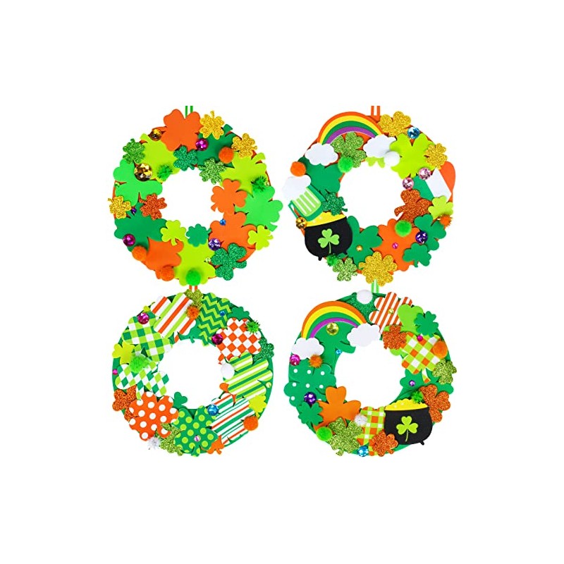 - The St. Patrick's Day Wreath Craft Kits is a lovely way that works well for children's arts and crafts class. Perfect for St. Patrick's Day parties, rainy day activities, classroom activities, family projects, Sunday school, daycare, and other spring gatherings. Keep your children busy and creative as they assemble their own lucky shamrock wreaths. The finished wreath ornaments are perfect to hang on front door or on kids' room wall to bring in some luck. Perfect gifts for friends and family.