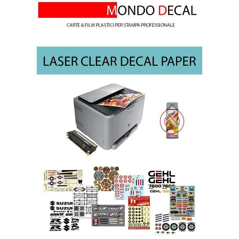 - Paper features: decal paper, laser printable, strippable, clear gum coat, no additional protection required