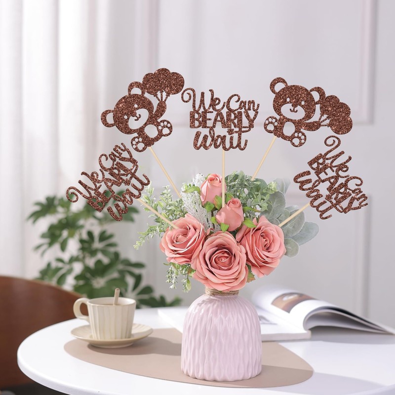 - Amplios usos: Estos bastones de mesa que podemos esperar son perfectos para fiestas temáticas de oso de bebé, fiesta temática de revelación de género, fiesta temática de baby shower, centros de mesa de cumpleaños para niños, decoraciones florales, pueden hacer que la mesa o flor sea más atractiva y traer la diversión a tu fiesta.