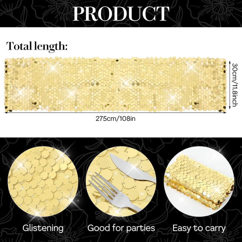 - Sequin Table Runner: Each party table runner measures approx 12 x 108 inches/ 30 x 275 cm, fits any table up to 8 feet in length, suitable for party decoration..It can satisfy your daily use for most tables. Ramp up the glam with this glimmering table runner