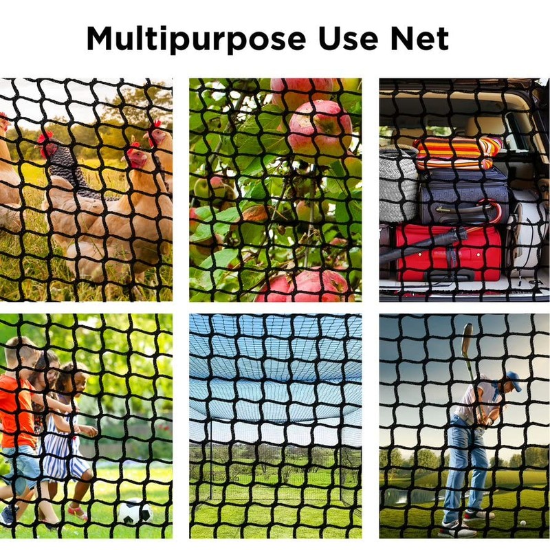 - Versatile Sports Netting: Perfect for golf, baseball, hockey, soccer, football, basketball, lacrosse, and more. Prevents missing balls and protects property and people.