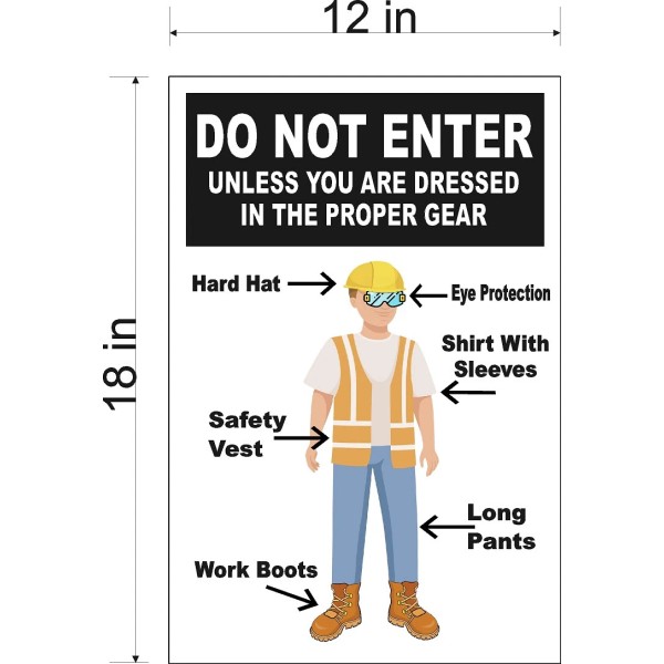 12" x 18" PVC SIGN SAFETY REQUIREMENTS WITH PROPER GEAR VEST EYE BOOTS PPE...