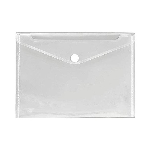 12 x A4 Plastic Wallets Clear Popper Wallet Envelope Folders Transparent School Document Folder Press Stud Wallet Plastic Folder Office Files with Button Closure