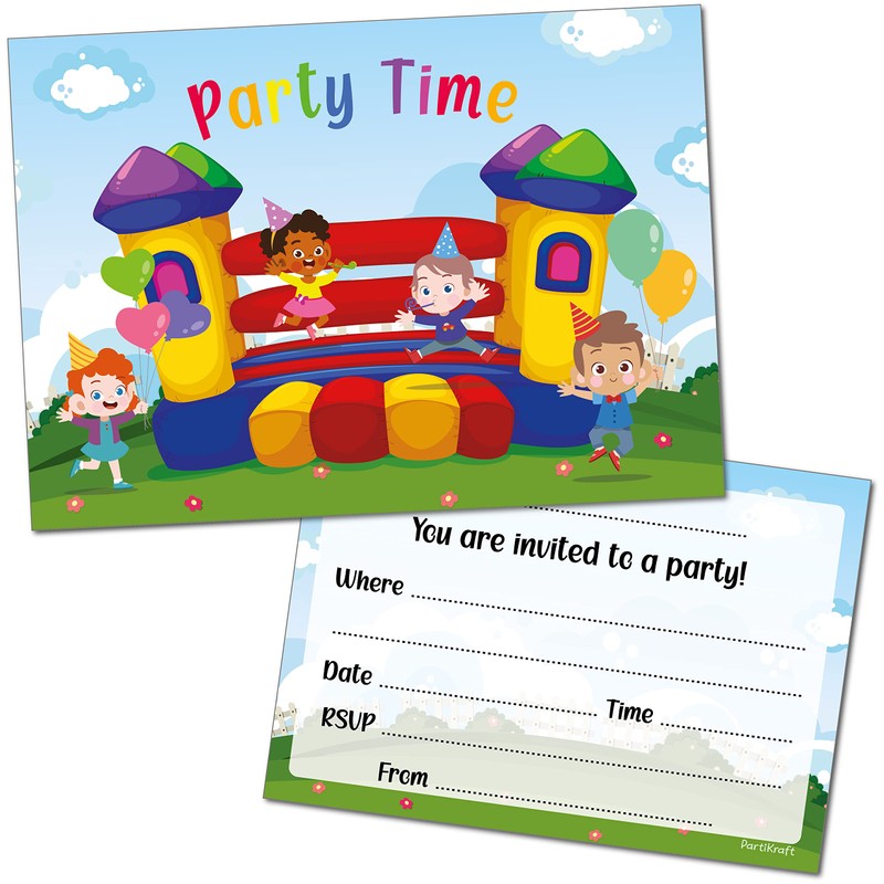 12 x Bouncy Castle Birthday Party Invitations with Blue Envelopes