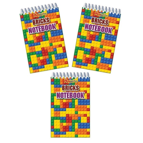 12 x Bricks Spiral Notebook-Party bag fillers - 3 Designs