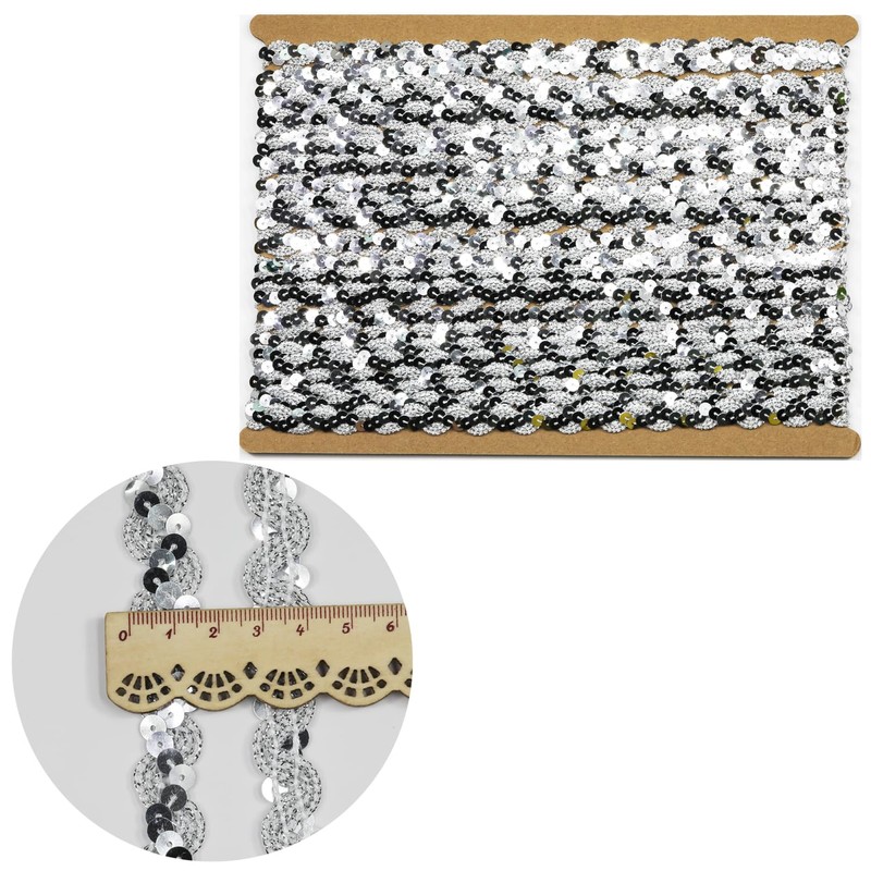 12 Yards Wide 0.59 Inch Silver Sequin Ribbon Trim for DIY Sewing Dress Dance Costumes,Headband (Silver)