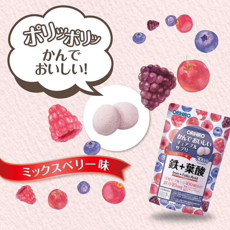 オリヒロ かんでおいしいチュアブルサプリ 鉄+葉酸 120粒 約30日分 RPJセット ORIHIRO