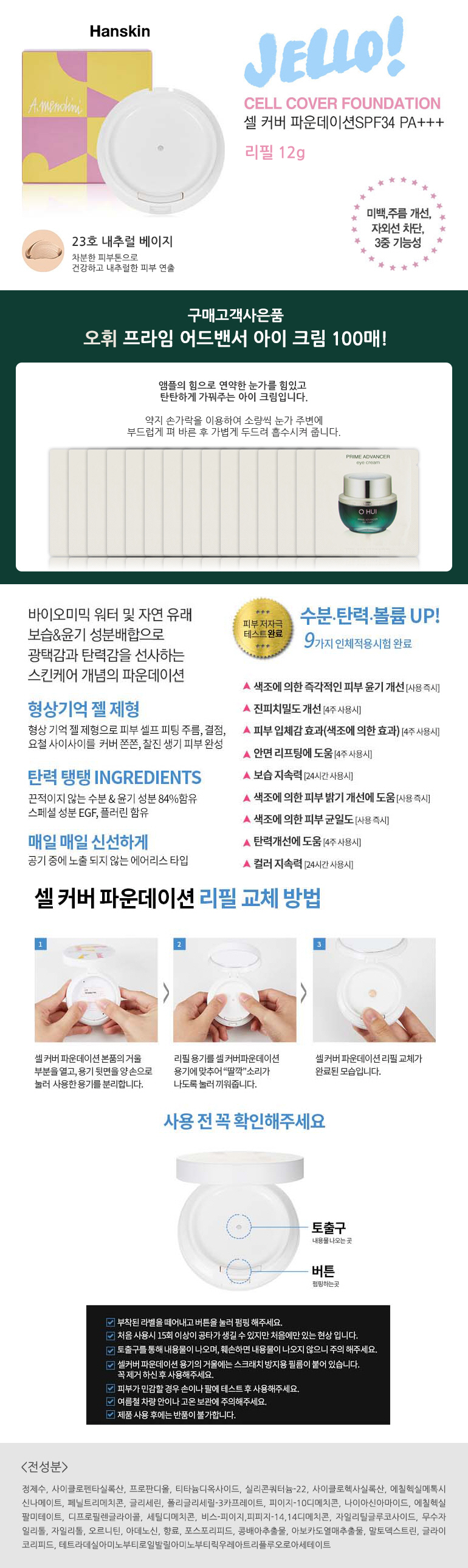 120 O HUI Prime Advancer Eye Cream sheets when purchasing a Hanskin refill / 한스킨리필 구매시 오휘 프라임 어드밴서 아이 크림 120매