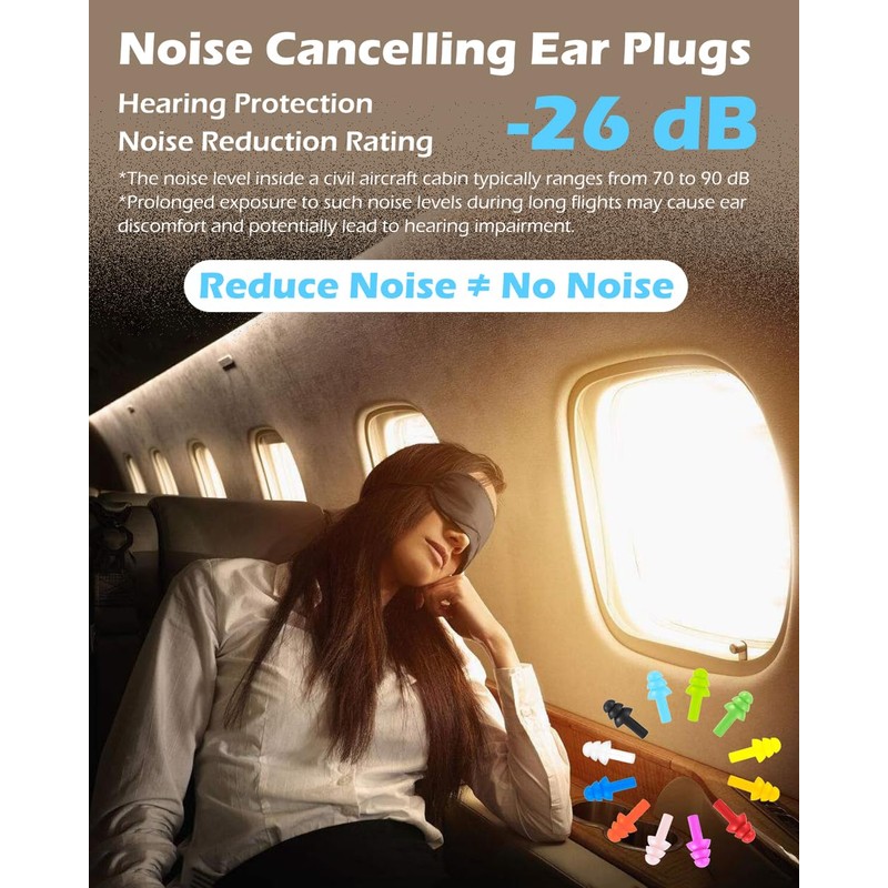 - ✔HEARING PROTECTION - Noise Reduction Rating 26dB (NRR) can reduce most of the noise in your daily life. whether it's a pleasant airplane trip, an exciting concert, or a noisy construction sites and motel, we can help you.