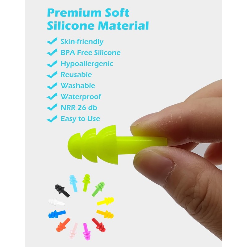 - ✔WASHABLE & REUSABLE – Soft silicone materials, these noise cancelling ear plugs are waterproof, washable and reusable. it can also block water from entering the ear canal during water sports such as swimming and surfing, making you relax and more enjoyable.