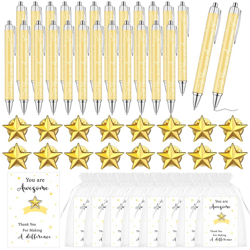 Package Includes: you will receive 120 pieces of employee appreciation gifts, including 30 star badge lapel pins, 30 inspirational ballpoint pens, 30 thank you cards and 30 clear organza bags, sufficient quantities, exquisite collocation, can meet your needs for use, is the ideal choice to send to the staff to express their appreciation
