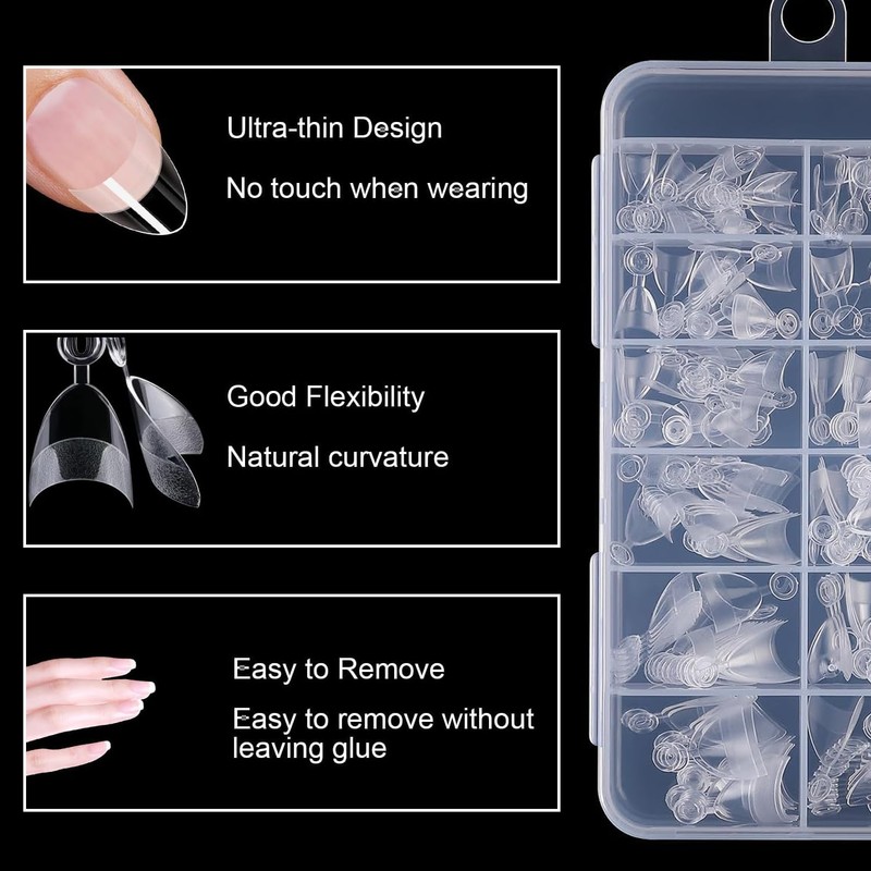 - 🔄 DURABLE – Made from premium material, these clear press-on nails are lightweight yet strong. Perfect for creating nail extensions or experimenting with different nail art styles.