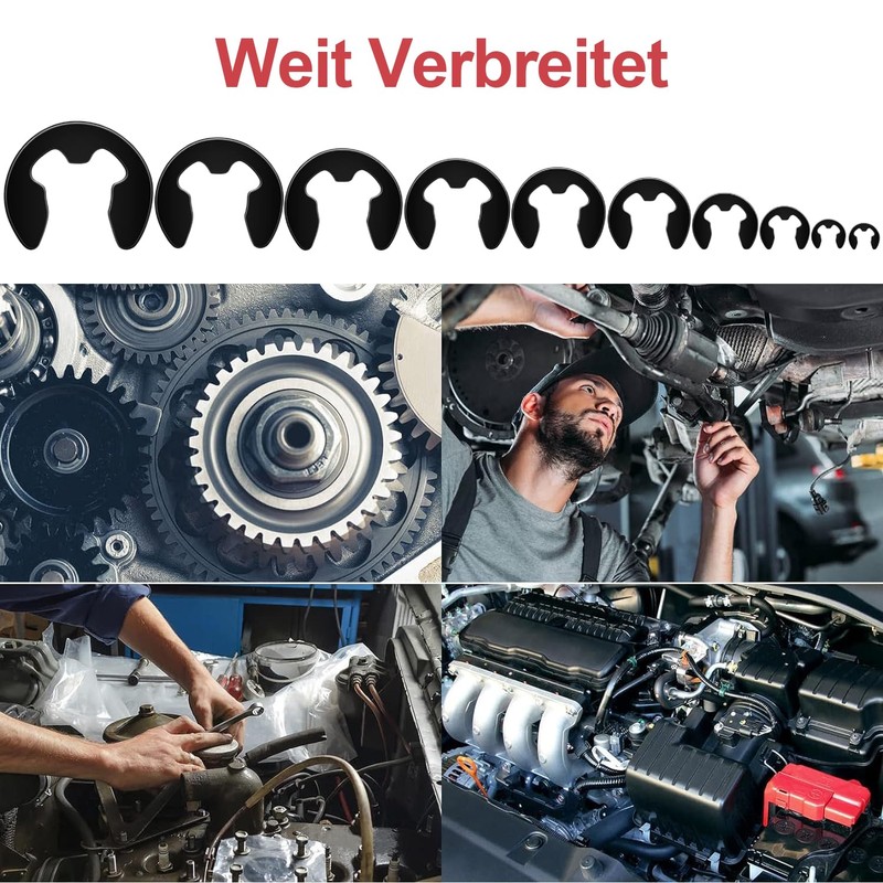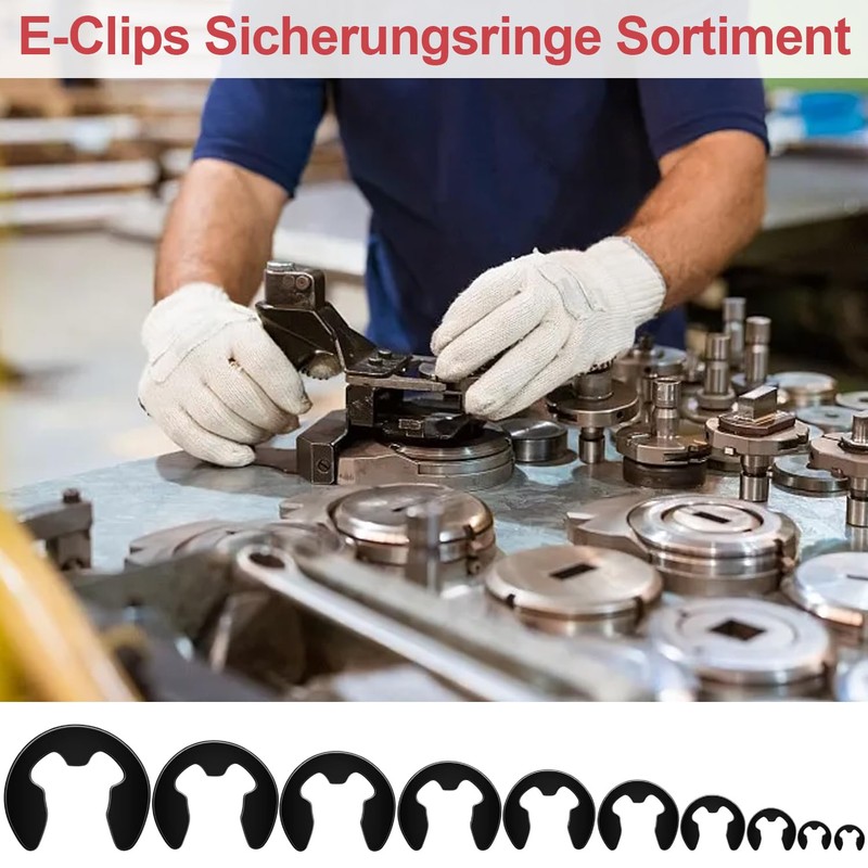 - High-quality material: this external E clip retaining ring is made of durable, heat-treated stainless steel with improved tensile strength, good corrosion resistance and oil resistance, holds strong and does not bend or deform easily and coated with black, anti-rust