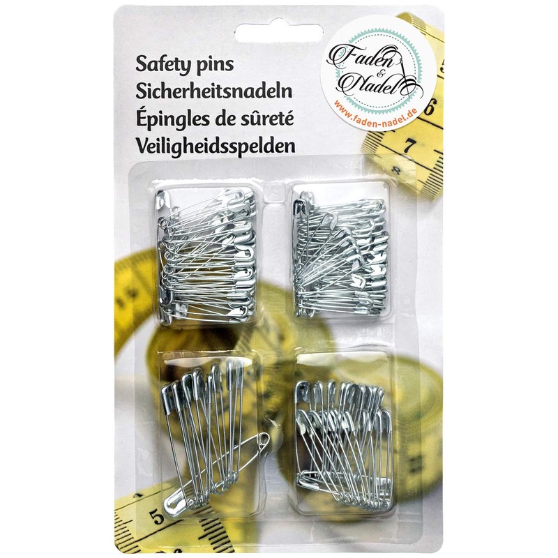 The large and small safety pins in the sizes approx. 28 mm, 32 mm, 37 mm and 46 mm.