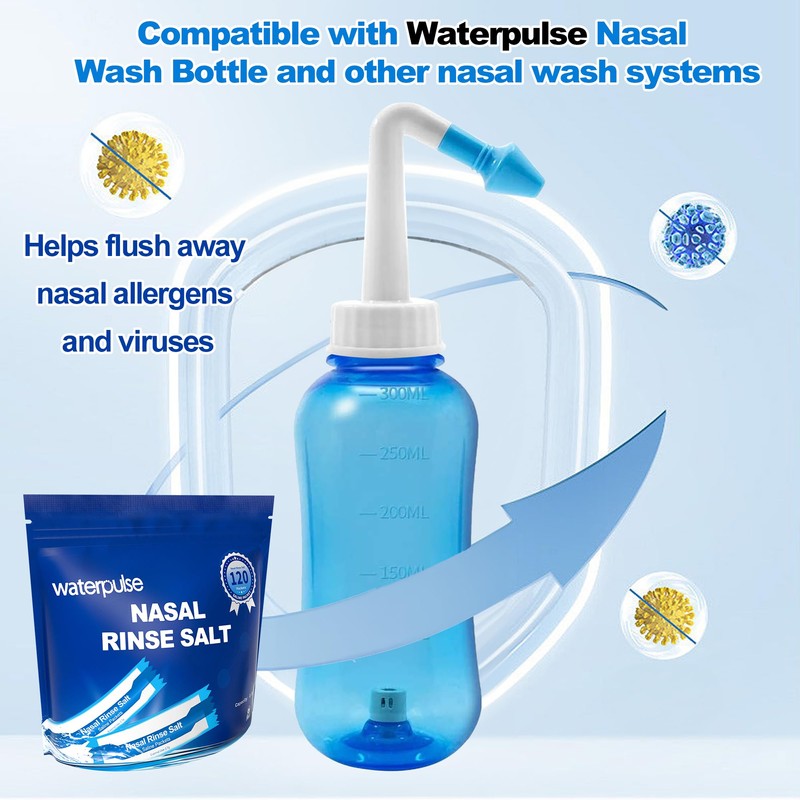 - Easy to Use: Simply fill the 300ml nasal wash bottle with distilled or purified water, it is recommended to use distilled or purified water with a water temperature of 98.6°F/37°C to rinse your nose more comfortably. Then add a small packet of our 2.7 grams of neti pot salt. Finally tighten the cap and shake to mix. Neti pot salts are finely ground and dissolve immediately in water.