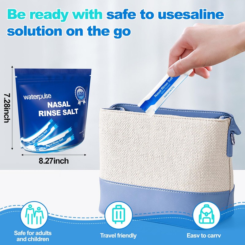 Sinus rinsing packets can be used with any nasal cleansing product to relieve sinus symptoms and nasal congestion caused by colds, allergies, sinusitis, rhinitis, nasal congestion, and dry air, while removing inhaled irritants such as dust and pollen. Suitable for both adults and children.