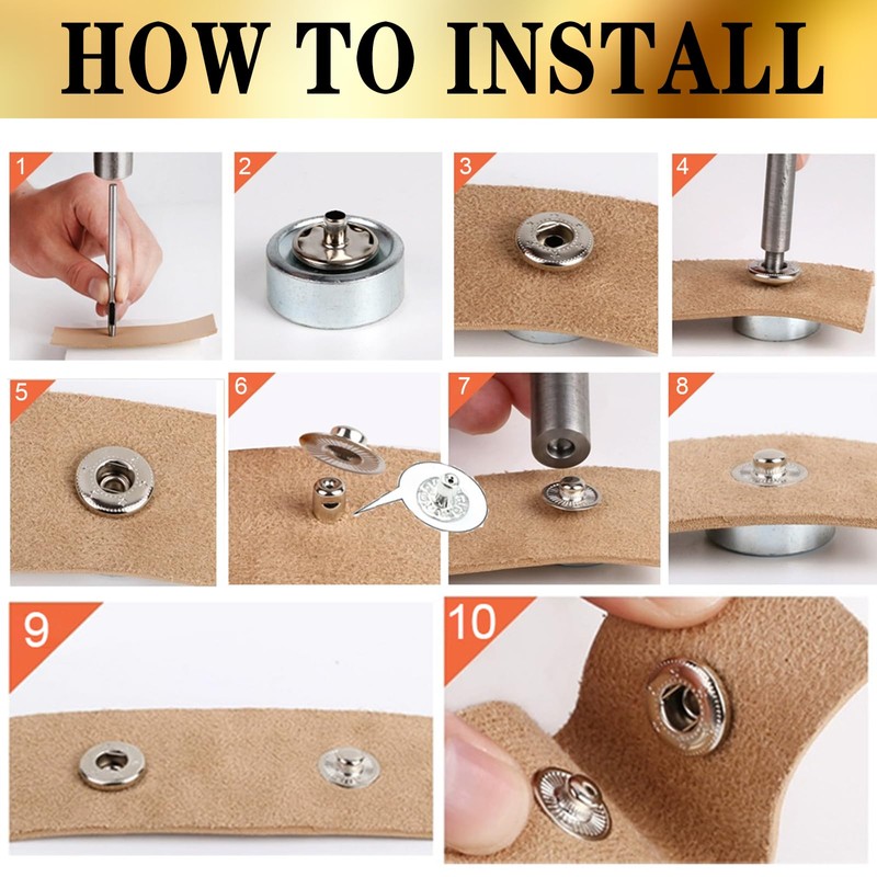 - Necessary Tools Kit: Comes with 4 pieces fixing tools, making the installation more convenient and efficient; The punch tool help poke holes on the target products, then hammer and push the snaps on both side. These double cap rivets can be applied for DIY crafts or making clothes such as shirts, jackets, overalls, backpacks, shoes, hats, belts, cotton-padded clothes, jeans, leather and so on.
