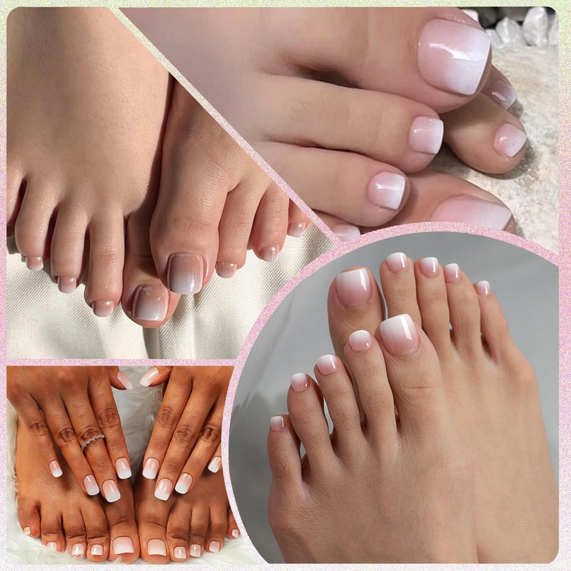 - 【Elegantes Design mit Farbverlauf】Die Nagelverlängerung für Füße in elegantem Nude-Weiß Farbverlauf bringt Ihre Füße zum Strahlen. Diese künstlichen Zehennägel zum Kleben sind perfekt für den täglichen Gebrauch oder für besondere Anlässe. Lassen Sie Ihrer Nagelkunst freien Lauf und kombinieren Sie die Falschen Fußnägel mit zusätzlichen Dekorationen für ein individuelles Design.