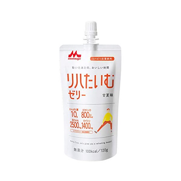 - リハたいむゼリーは、BCAAやビタミンDが含まれた、運動後にさっぱりお飲みいただけるゼリー飲料です。