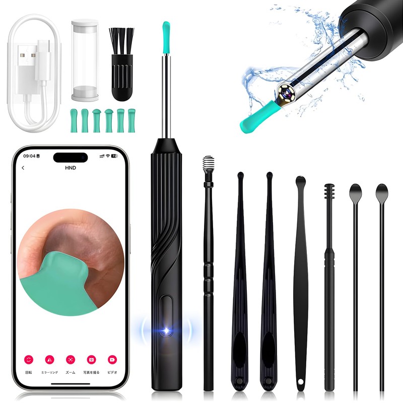 • 【温度制御搭载&IP67防水設計】カメラ耳かきは温度制御を搭载し、きれいに耳掃除かきです。IP67防水設計、日常の清掃にもできます。レンズ側だけは防水仕様、水に浸して清掃しないでください。(ご注意:カメラ付き耳掻きのレンズ先端だけは防水使用で、Type-cは防水ではありませんので、製品が水に浸透することはだめですアニーズに応えます。 )