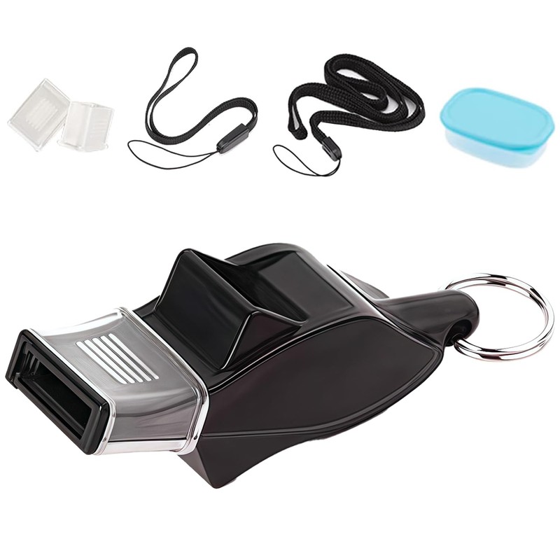 - 【商品仕様】素材は高品質の ABS で、ホイッスル本体サイズは約62mm ×27mm のコンパクト設計で持ち運び便利で、重さ約 8.3g の軽量仕様です。付属品:ネックストラップ、リストバンド、ホイッスル、収納ケース。