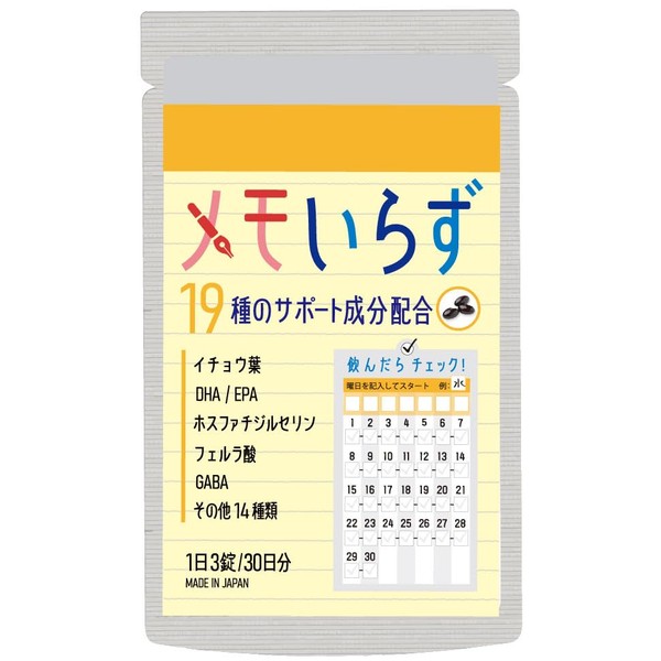 メモいらず 脳の栄養素 記憶力 物忘れ オールインワンサプリメント 【イチョウ葉 120mg/日】【ホスファチジルセリン 30mg/日】【DHA 105mg/日】【EPA 10mg/日】【フェルラ酸 100mg/日】【GABA 100mg/日】【パコパエキス】【テアニン】【ヒスチジン】【ノビレチン】【アンゼリカエキス】【こんにゃくセラミド】【トリプトファン】30日分