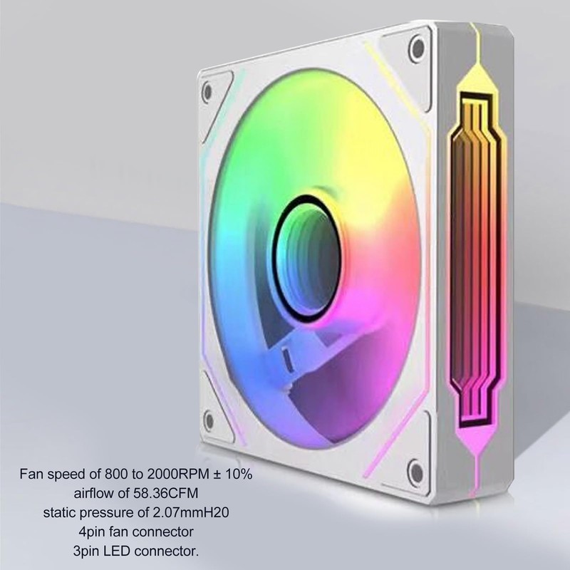 - 4PIN FAN CONNECTOR: Fan speed of 800 to 2000RPM±10%, airflow of 58.36CFM, static pressure of 2.07mmH20, 4pin fan connector, 3pin LED connector.