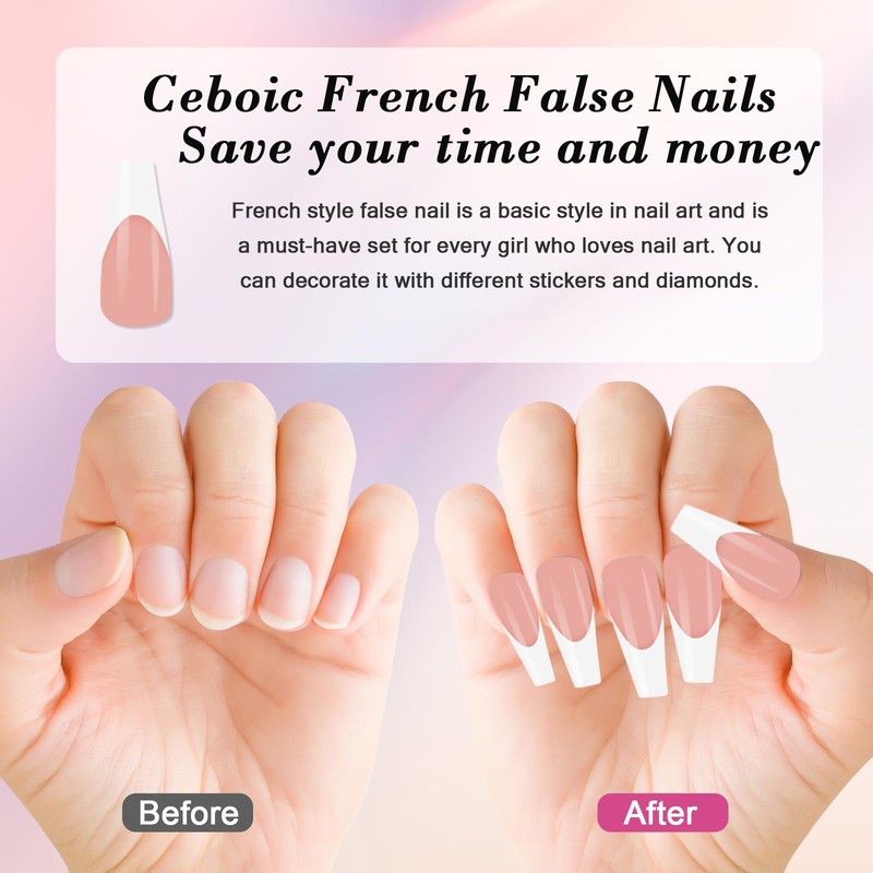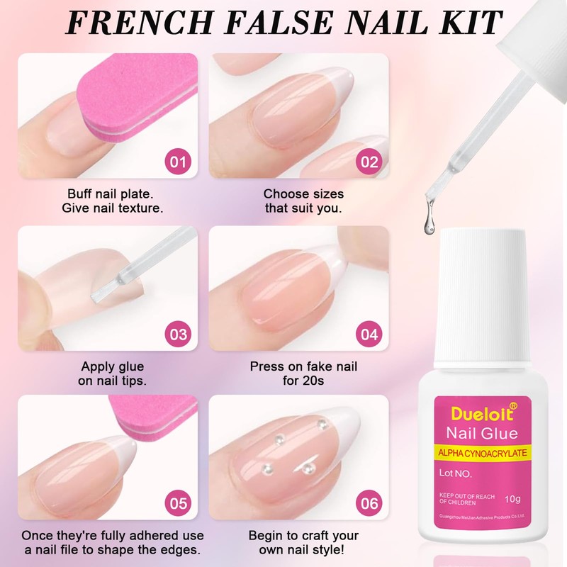 - 【Long-Lasting French Manicure】With our high-viscosity nail glue, the stick on nails can last up to three weeks, allowing you to enjoy their charm for a long time. The glue is designed with a brush head, which is easy to apply and can precisely control the amount, providing convenience for your manicure experience.