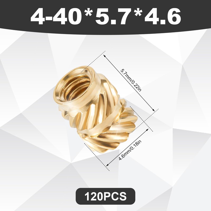 120pcs Threaded Insert, 4-40 x 5.7 x 4.6mm 3D Printing Brass Nuts Knurled Brass Nuts Female Thread Knurled Heat Embedment Nut for 3D Printing Parts Loptop Automotive Plastic Shell
