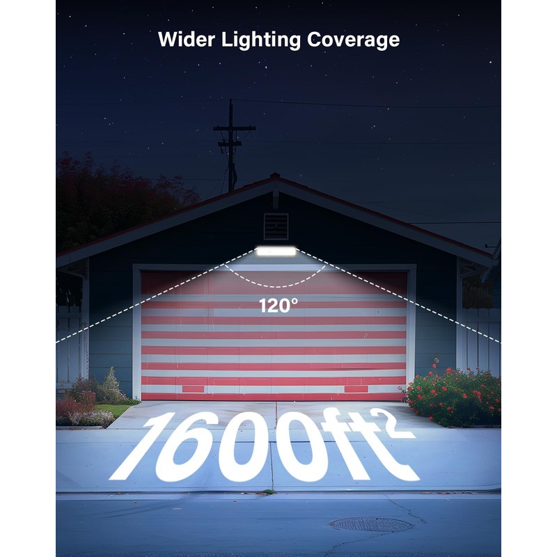 - Ergonomic & Smart Design: This garage light is built-in a rebreather which helps to extend the life span of the LED chips effectively by dissipating the heat and tiny steam inside in time. What’s more, our len is dealt with a professional matte finish technology, it will reduce glare and make the light softer and much more friendly to your eyes. Not any harm caused even under long-time illumination.