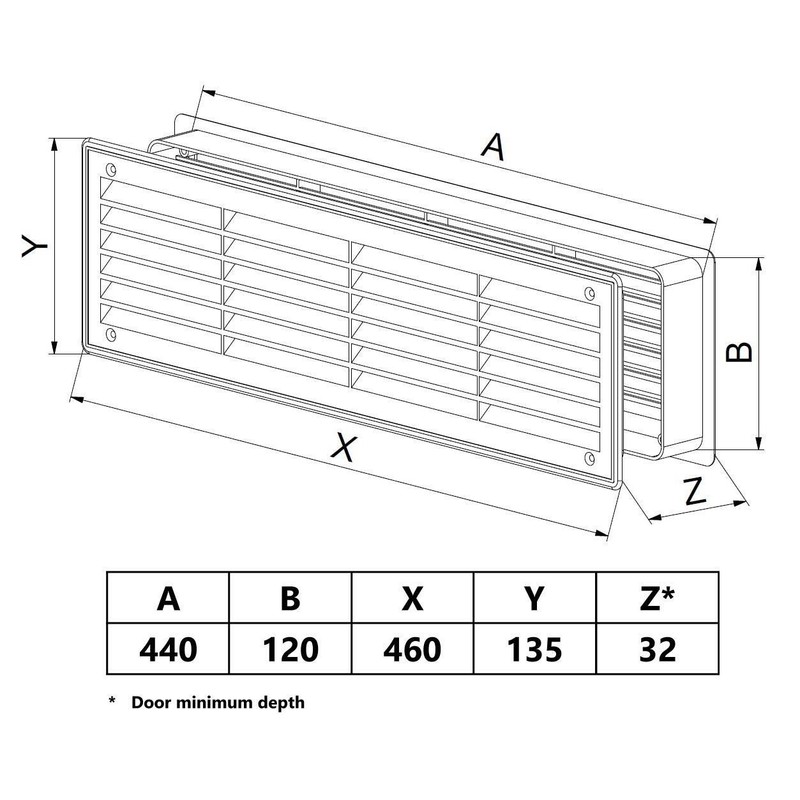 120x440mm Internal Door Plastic Ventilation Grille Air Vent Collar Grey Colour