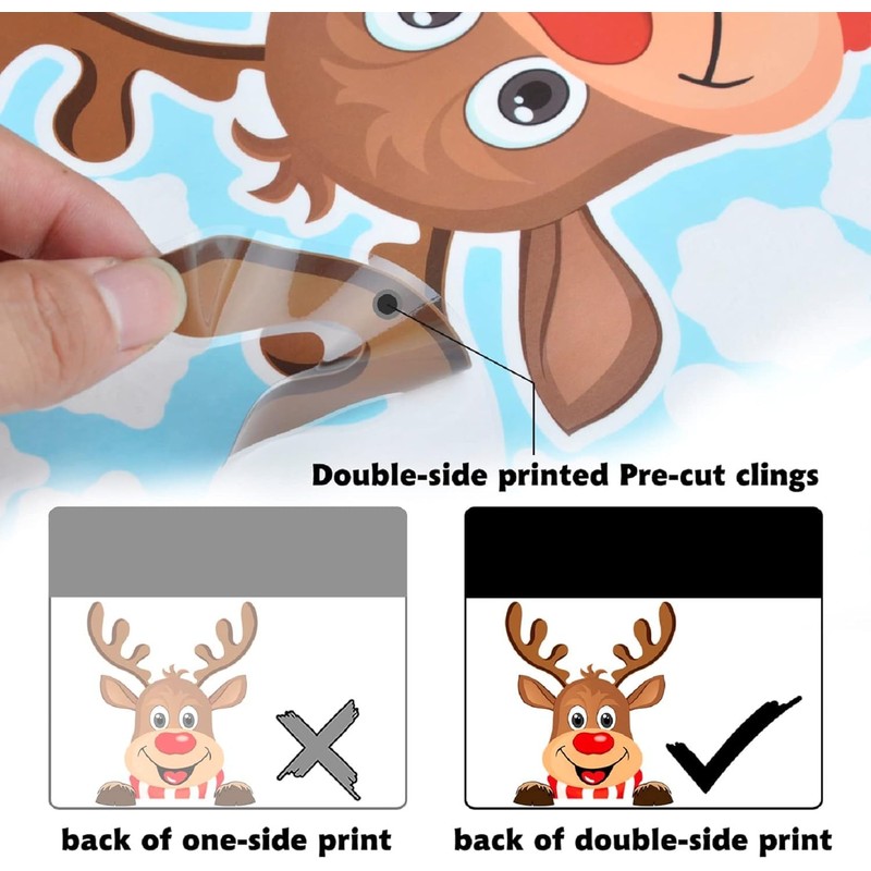 • Double-Side Christmas Window Clings: These window clings have Double-Side patterns, the means that you can see him when you stick them on the window, no matter indoor or outdoor