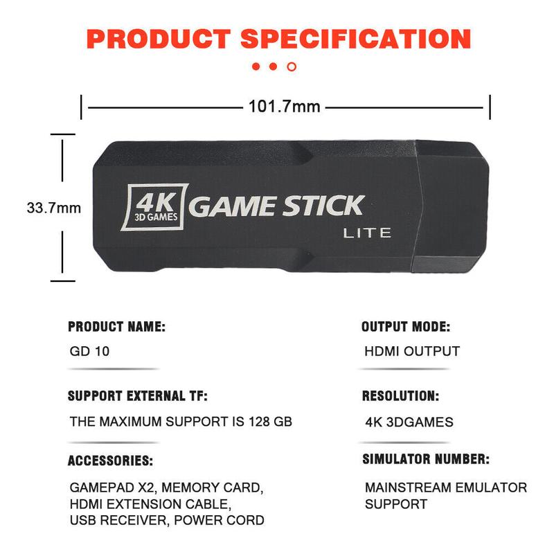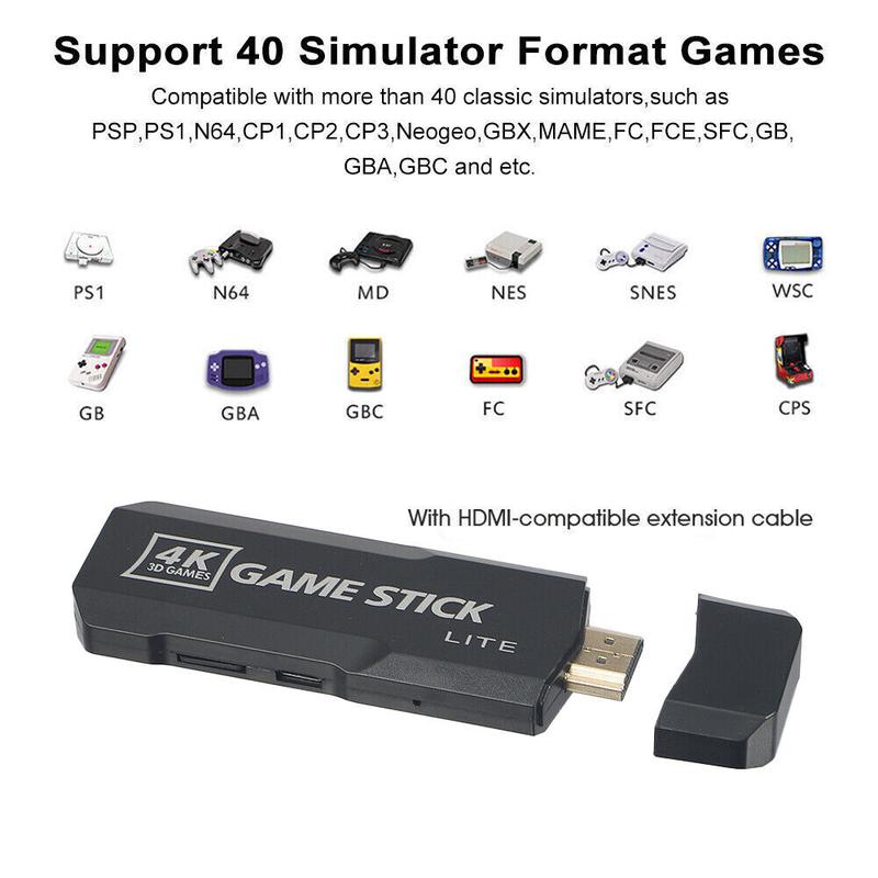 128G 40000 + Games Stick Retro Game Console 4K HD 2.4G Wireless Controller 2024