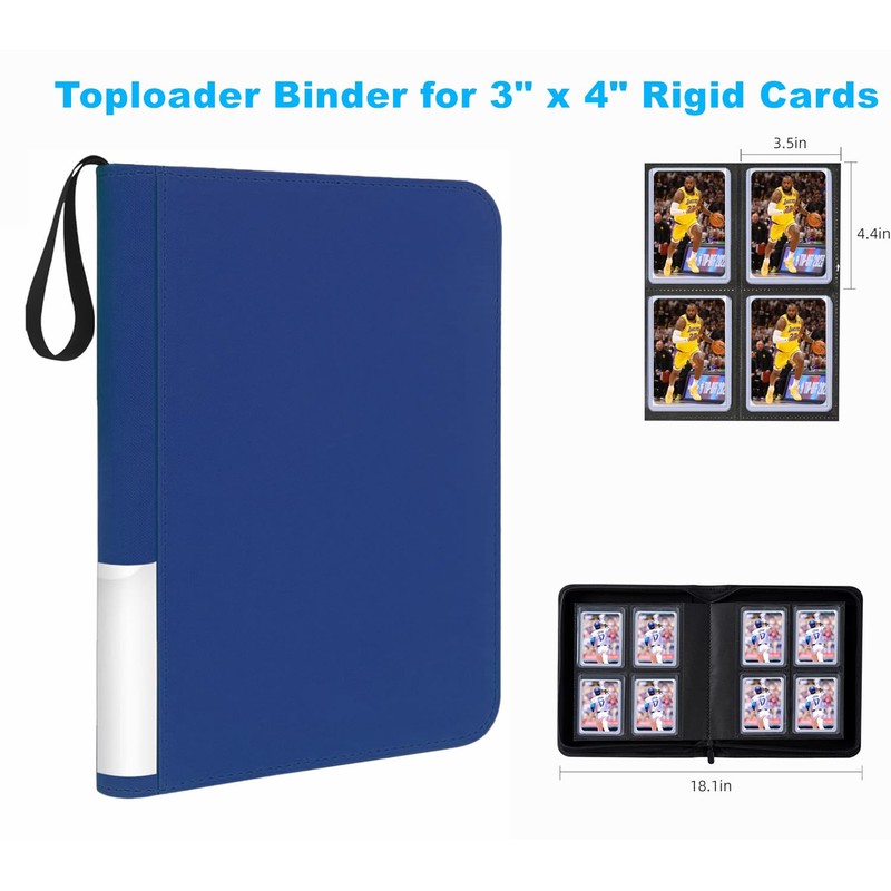 128Pockets Toploader Binder Holds Top Loaders, 4-Pocket Top Loaders Binder Album, Toploader Card Binder for 3" x 4" Rigid Card Holders, Ringless Toploader Storage Folder (Blue)