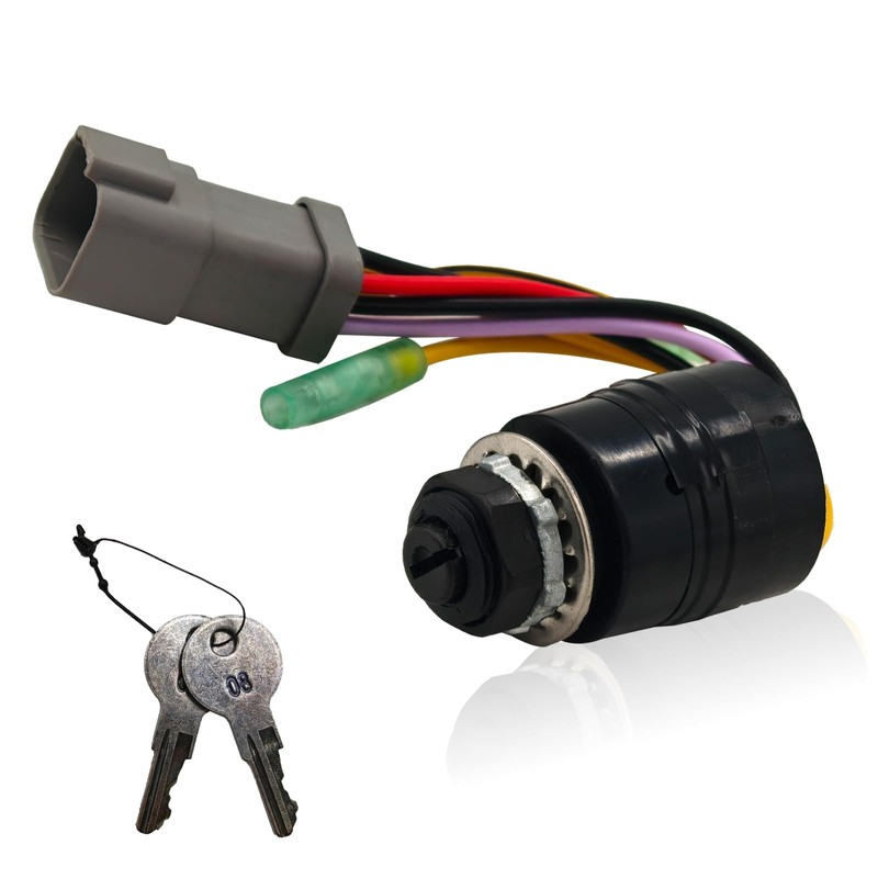 129572 Ignition Switch with 2 Key Compatible with Tracker Boats, 2 Keys 3 Position 6 Wire Connectors
