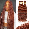 12A #350 Copper Ginger Human Braiding Hair for Boho Braids 3 Bundles 16 Inch 100g Deep Wave Braiding Hair for Bohemian Knotless Braids 100% Unprocessed Virgin Bulk Hair Extensions No Weft