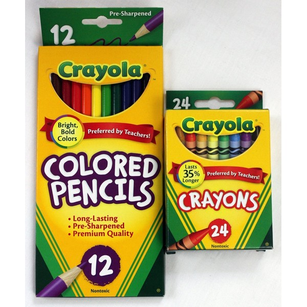 12ct Crayola Colored Pencils Pre-Sharpened & 24ct Crayola Crayons Basic Bundle