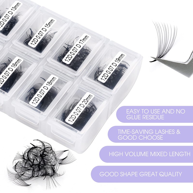- 【1200 x Russian Volume Lashes】Wendylashes 12D pre-made lashes 0.08mm C curl, false lashes bouquet detach from the original packaging and create a new detachable eyelash case with 12 compartments containing different lengths of eyelashes at low prices and high quality in the popular range of 9-20 mm, which can be purchased in Only once for them everyday and party looks.