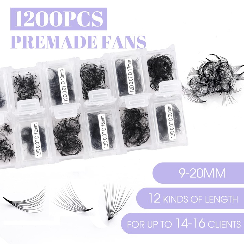 12D Premade Fans Eyelash Extensions 1200PCS Pre Made Fans Lashes 0.07mm C Curl Mixed Tray 9-20mm Handmade Loose Volume Lash Extension Premade Lash Fans (1200-12D-0.07-C-920)