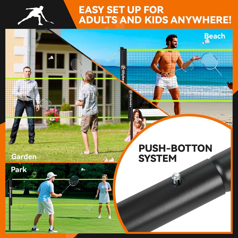 - Bring You A Plendid Game. Tear-resistance, UV-resistant PE material guarantee good quality of badminton net. Its two sides are covered by 4” wide 600D Oxford while its upper and lower sides are covered by 300D anti-water Oxford. All covers are tear-resistance, giving you more happy time in game.