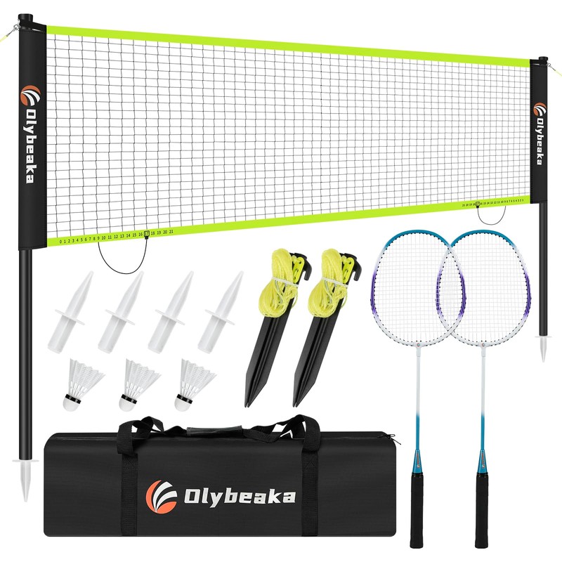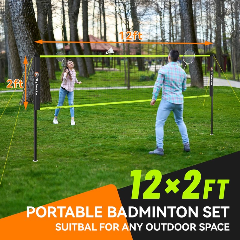 12ft Outdoor Badminton Set for Backyard Beach with 2 Aluminum Badminton Rackets, 3 Shuttlecocks, Carry Bag - Easy Set Up & High Stability Small Badminton Net Set for Kids & Adults