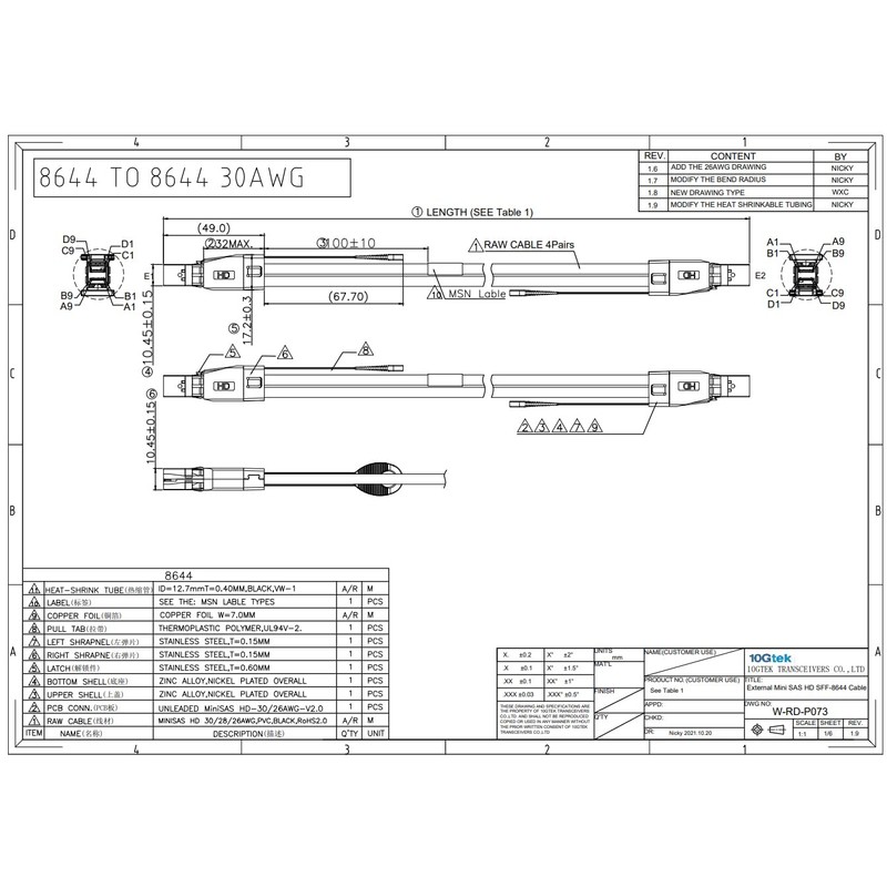 - AWG30 Cable twinaxial de 8 pares de alto ancho de banda y baja desviación;