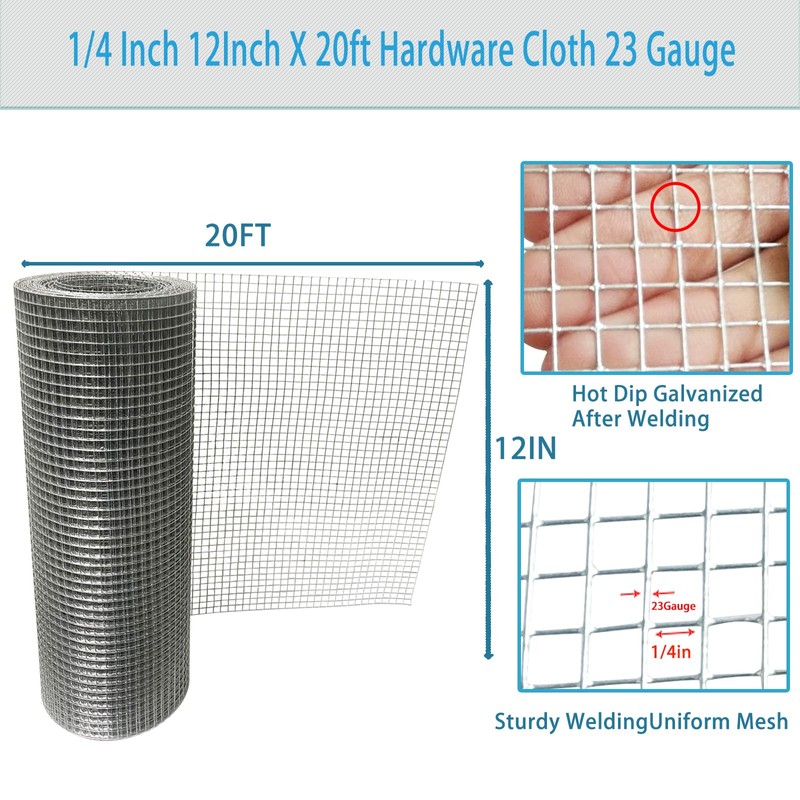 - High Quality : Our hot dip galvanized after welding hardware cloth roll is made of low carbon steel wire which determines the high quality of this welded wire fencing hardware cloth 1/4 inch 12in x 20 ft. This hardware cloth chicken wire cloth is strong, easy to unfold, and not easy to break. pack:A roll of hardware cloth.