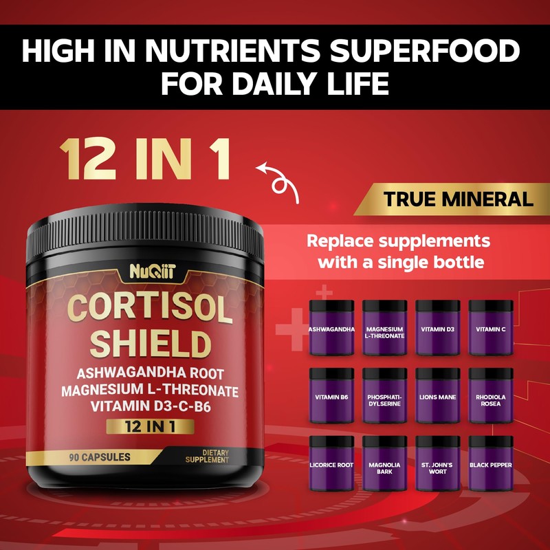 - NUQIIT Cortisol Shield Supplement - A Well-Being Daily 830mg - The excellent combination of Ashwagandha and Magnesium L-Threonate and 10 ingredients complex contributes to the support of Mind & Mood Balance, Rest Well, Immune Health; especially super extract for high convenience and effectiveness for a simple lifestyle.