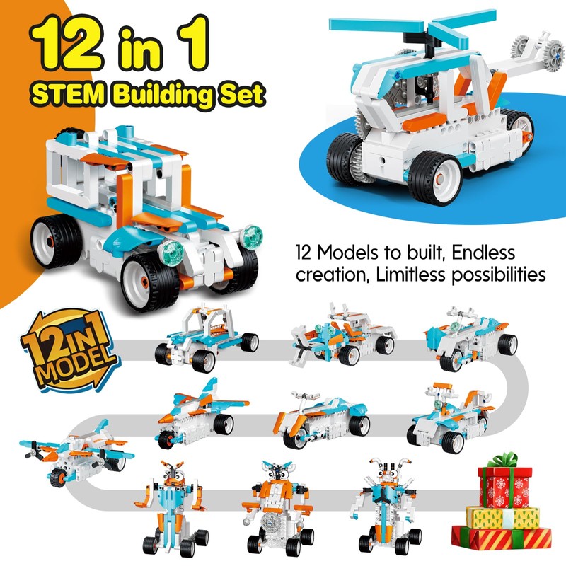 12in1 STEM Robot Building Kit for Kids 5-12+, Remote/APP/Voice Control STEM Robot Helicopter Car Building Toys for Kid Science Learning, DIY Building Blocks Set, Boys Girls Birthday Xmas Gifts Ideas